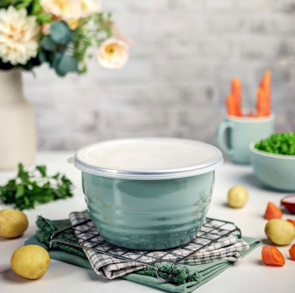 Metalac Aufbewahrungsbehälter, Grün, 16cm|1,2 Liter, STANDARD WAVE, Emailliert, Vintage Design