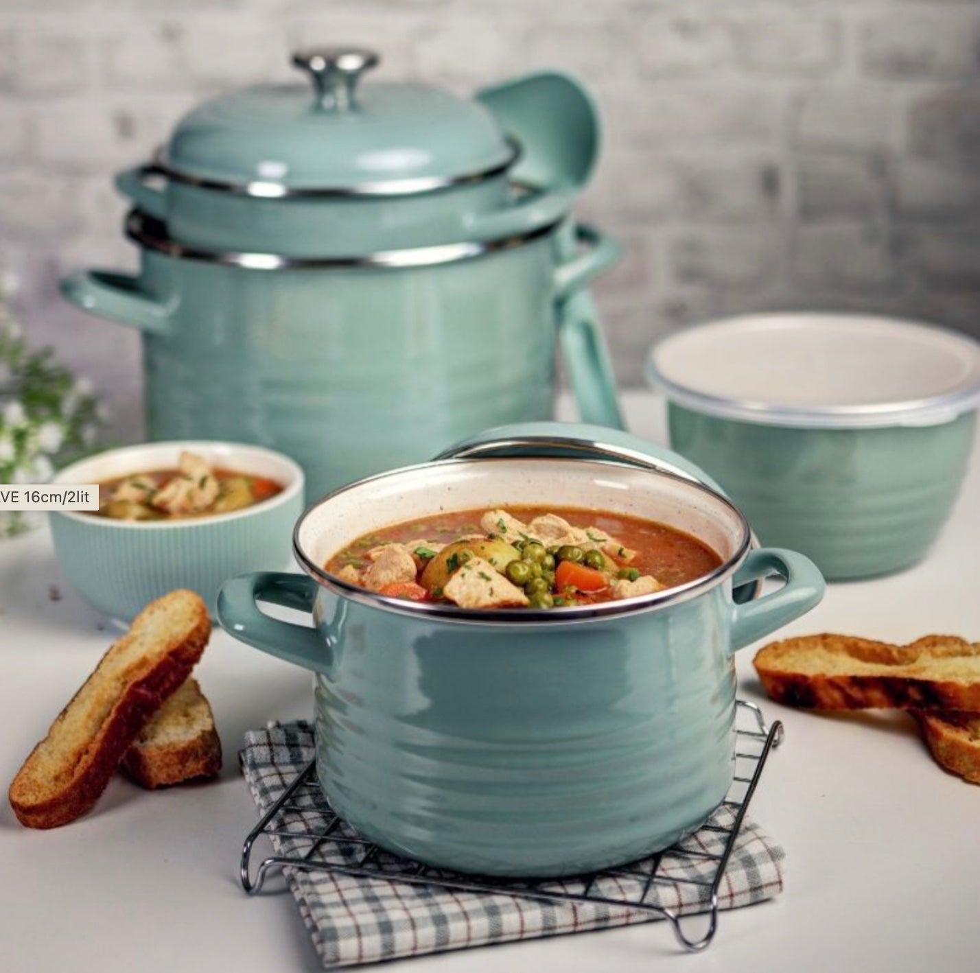 Emaillegeschirr ist langlebig, widerstandsfähig gegen chemische Einflüsse und Abnutzung und einfach zu pflegen. Es kann auf allen Heizflächen verwendet werden, einschließlich Induktion.