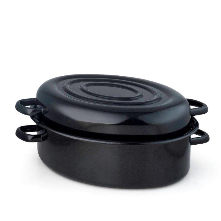 Metalac Bräter für Ofen [Pekač] Emaille Stahl, 5 Liter, 38cm außen, 34cm innen,, 5 Liter, Höhe 14,1cm, Schwarz, Emailliert