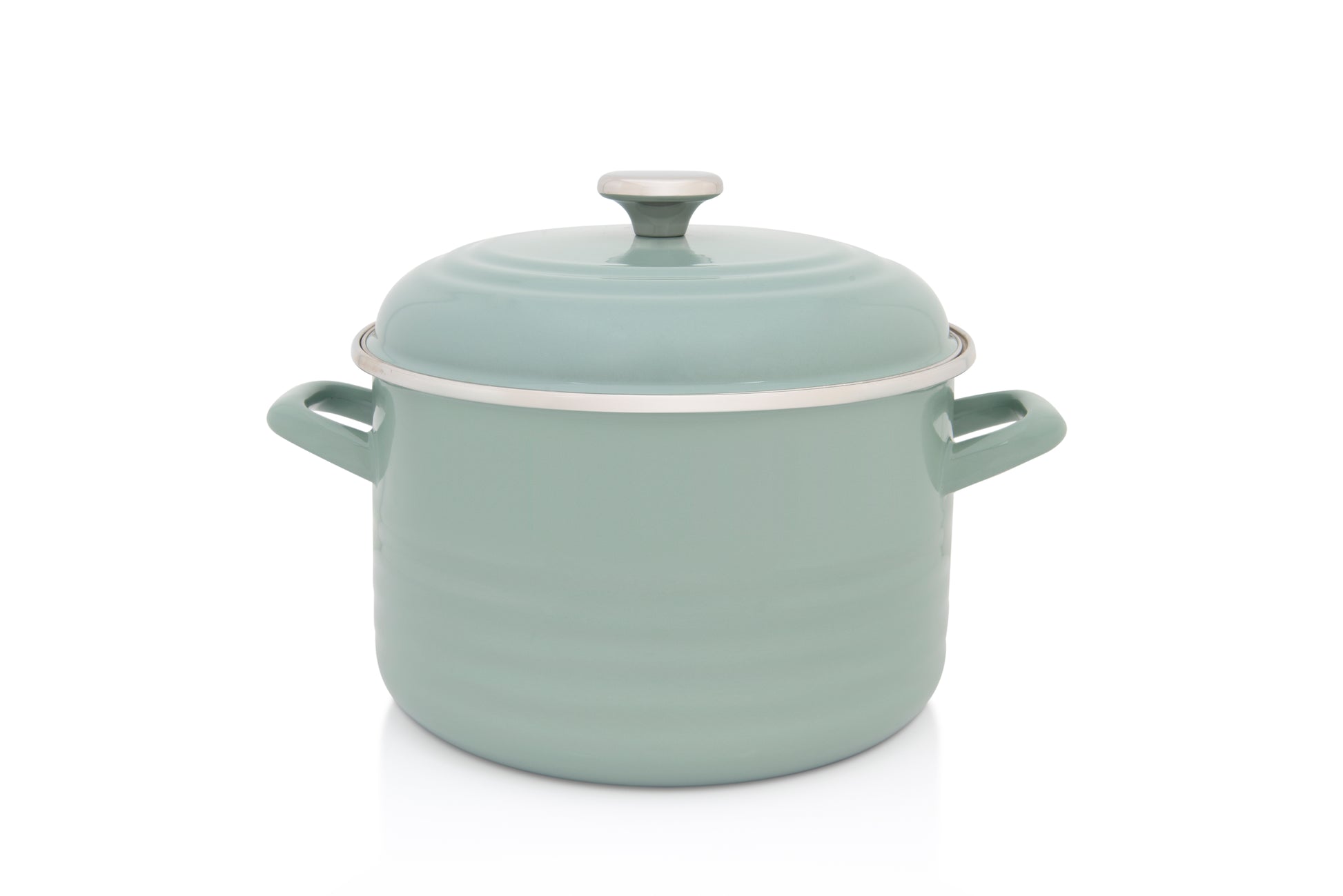 Metalac Kochtopf mit Deckel, Grün, 24cm|6,75 Liter, STANDARD WAVE, Emailliert, Vintage Design