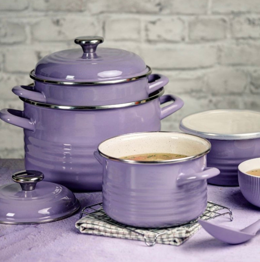 Emaillegeschirr ist langlebig, widerstandsfähig gegen chemische Einflüsse und Abnutzung und einfach zu pflegen. Es kann auf allen Heizflächen verwendet werden, einschließlich Induktion.