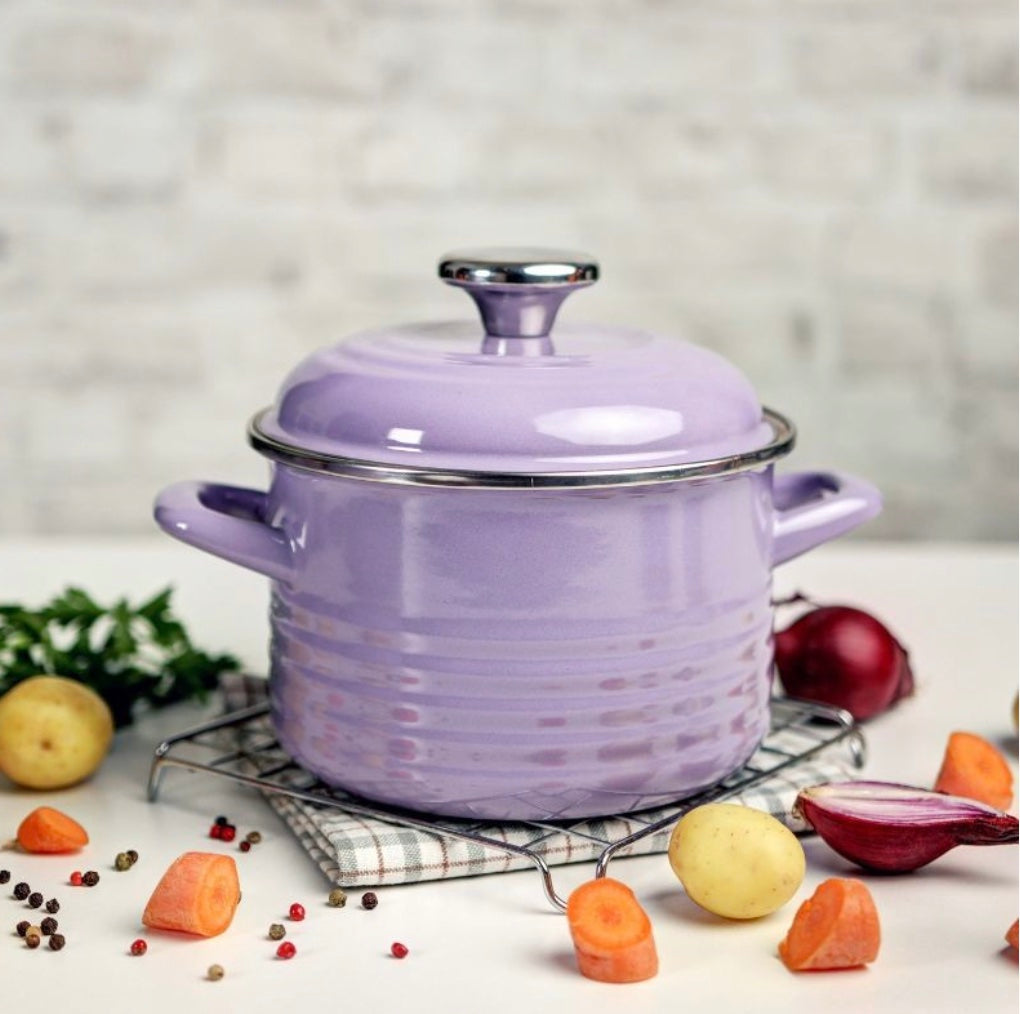 Metalac Kochtopf mit Deckel, Lila, 20cm|4 Liter, STANDARD WAVE, Emailliert, Vintage Design