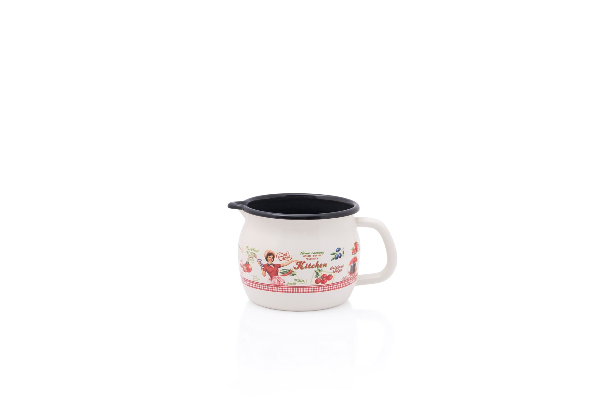 Metalac Milchtopf 10cm|0,85l, FRÖHLICHE KÖCHIN, Emailliert, Vintage Design