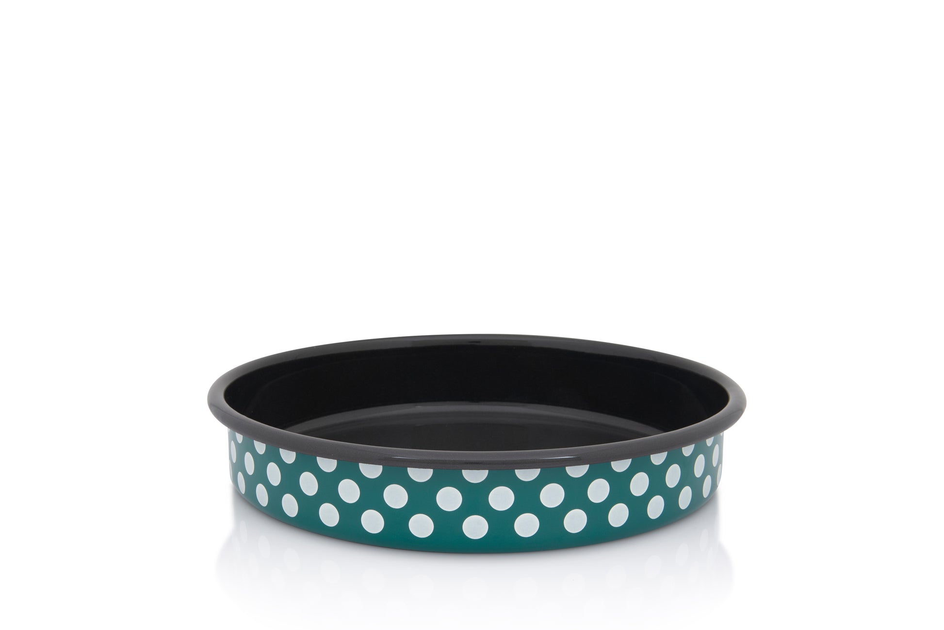 Metalac Ofenblech 28cm, GRÜNE PUNKTE, Emailliert, Vintage Design