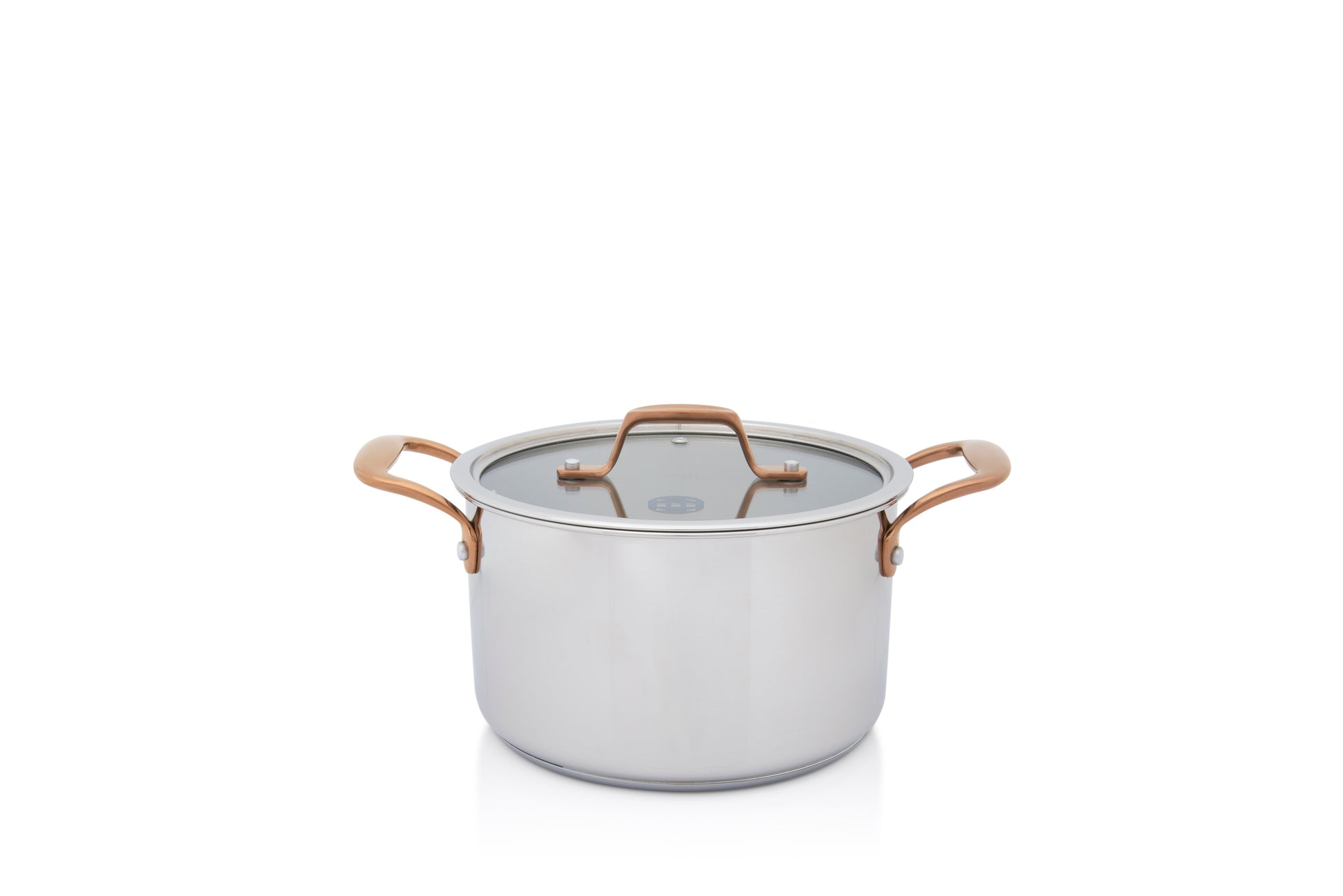 Die Venera Collection vereint zeitlose Eleganz mit robustem Profi–Standard. Hergestellt aus hochwertigem Edelstahl (CrNi 18/10) garantiert dieser Kochtopf eine optimale Wärmeleitung und langanhaltende Performance. Die edlen Kupfergriffe und der transparente Glasdeckel setzen stilvolle Akzente und machen „Venera“ zum Blickfang in jeder Küche.