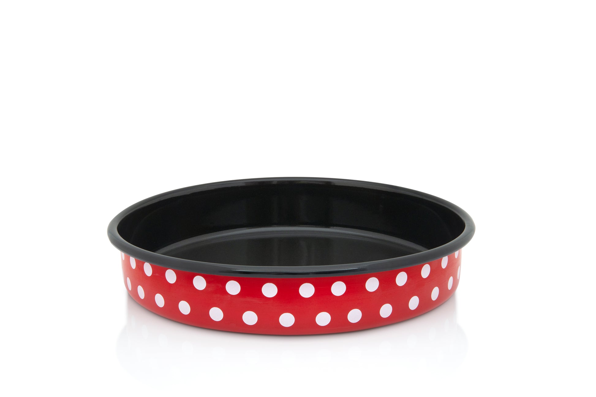 Metalac Ofenblech rund 30cm, WEIßE PUNKTE, Emailliert, im Vintage Design