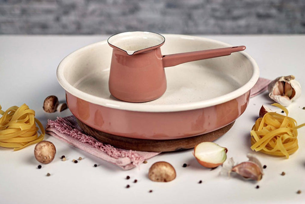 Emaillegeschirr ist langlebig, widerstandsfähig gegen chemische Einflüsse und Abnutzung und einfach zu pflegen. Es kann auf allen Heizflächen verwendet werden, einschließlich Induktion.